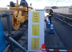 1. 矢印看板に重りを設置し、風散防止に努めること。